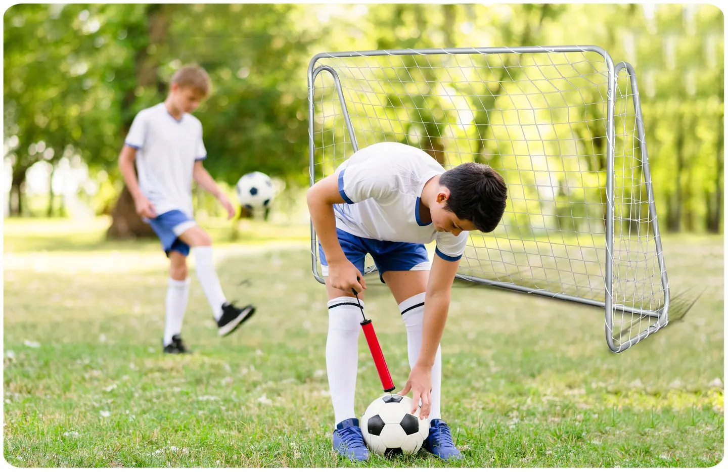 • Bramka piłkarska jest lekka. Jeśli jest potrzeba, bramkę można w łatwy sposób przenieść w dowolne miejsce.