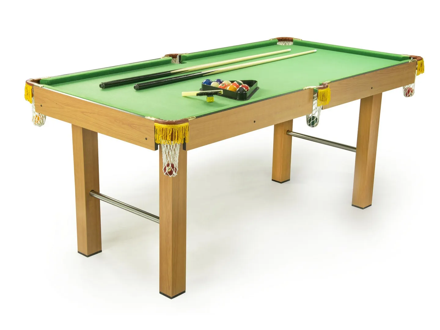 Model NS-438 rozstawisz raz-dwa i równie łatwo przeniesiesz go z miejsca na miejsce. Stół jest zadziwiająco lekki, biorąc pod uwagę jego nadzwyczajną wytrzymałość i stabilność całej budowy. W niczym nie ustępuje masywnym, dużym stołom bilardowym, jakie można spotkać w klubach, co daje mu wyjątkową przewagę.